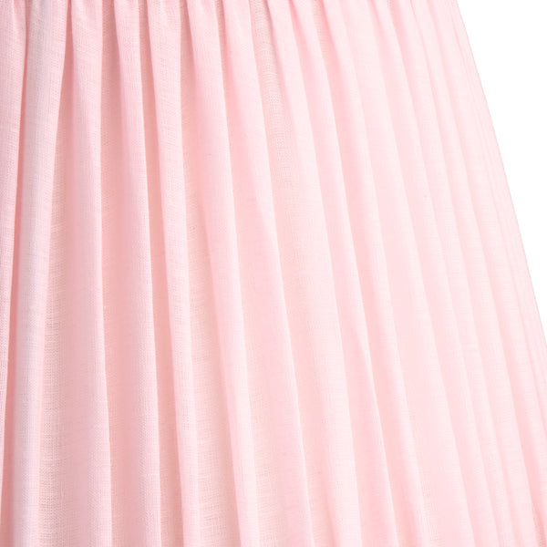 The Marshmallow Linen lampshade, in soft blush pleats with delicate ruffled trim, adds a sweet, airy warmth and a gentle glow to any room.