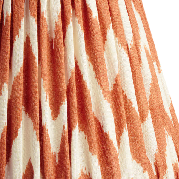 A gathered straight empire shade in a striking orange zig-zag ikat pattern. Hand-made from soft natural linen with a warm cream fabric lining. Simple, elegant, timeless and just a little less ordinary.