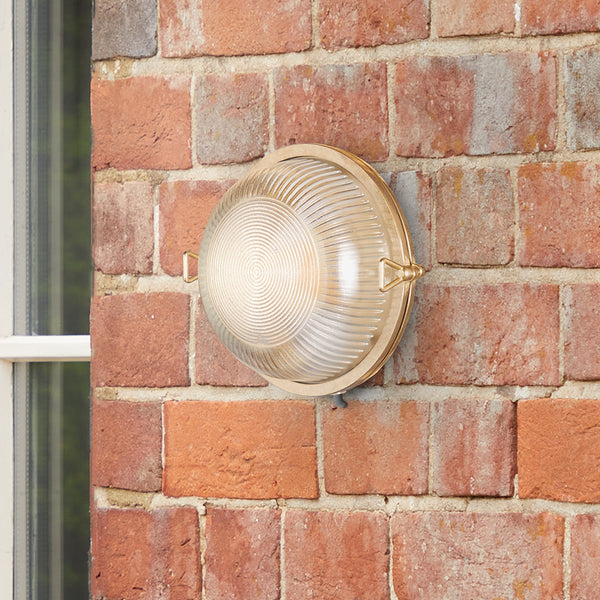 hardy ip64 round bulkhead in unlacquered natural brass see dimensions