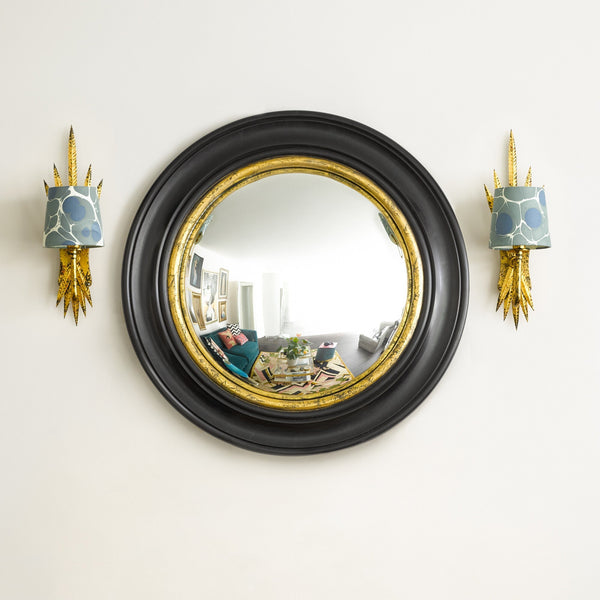 At 80cm diameter, this Marlon mirror makes a strong and imposing statement. With a gorgeous frame modelled on an 18th century French classic, the convex mirror, with its fisheye view, takes in the whole room. A centrepiece.