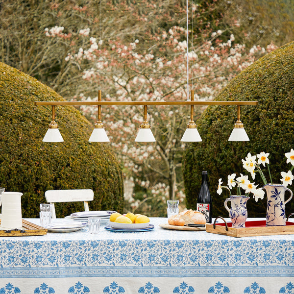 Yup, you got it....Penta - five lights, and well....fabulous. Long, imposing and stylish, without dominating. We worked hard on the precise dimensions and changed several times before we settled here. Perfect over a kitchen island. Combine with all manner of fabric, card, glass, brass or ceramic shades. Yes please! (Shades not included)